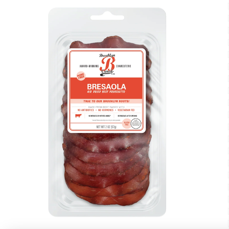 Brooklyn Cured Bresaola is a classic Italian delicacy seasoned with herbs and spices. It's just like a prosciutto, but it's made with beef instead of pork. It's ideal for snacking and salads or drizzled with olive oil and lemon.