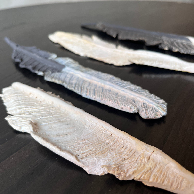 The hand-shaped Grandmont Street ceramic feather is thoughtfully crafted to serve multiple purposes, including holding stick or cone incense, storing small trinkets and rings, or functioning as a decorative hanging piece. Each feather showcases meticulous attention to detail, reflecting expert craftsmanship that combines both form and function. Its elegant design adds a subtle artistic touch to any space, making it a versatile accessory for enhancing your home’s ambiance or organizing your personal items with style. Durable yet delicate, this piece is a refined addition to your collection.