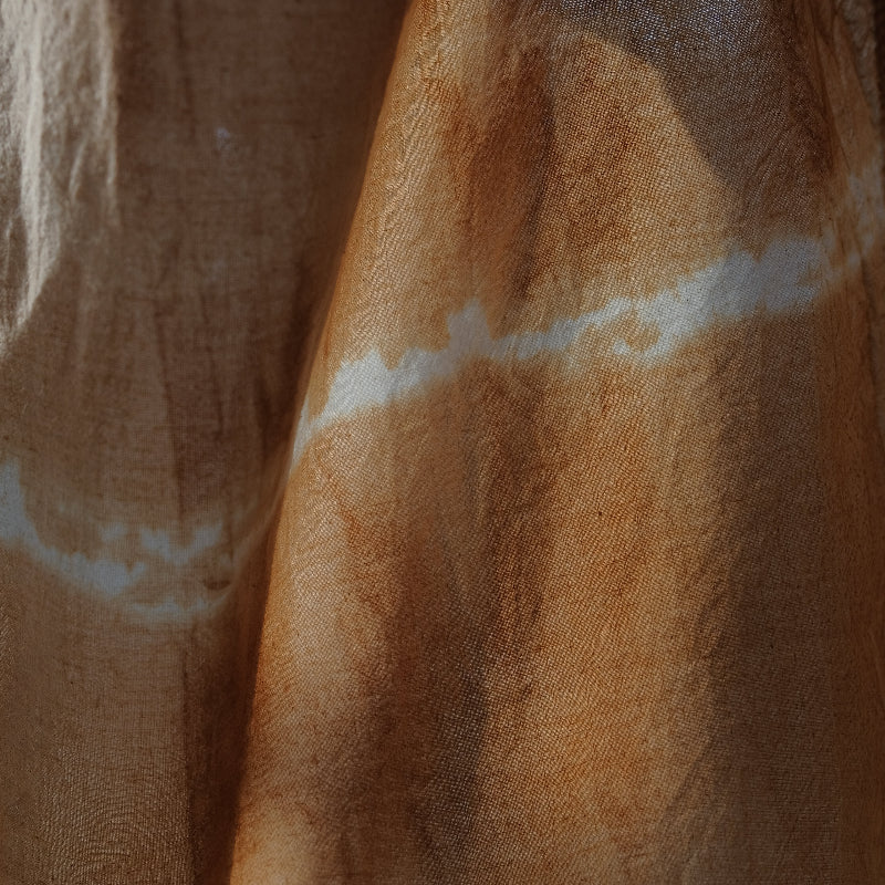 A selection featuring one-of-a-kind patterns created through hand-folding, twisting, and tying.