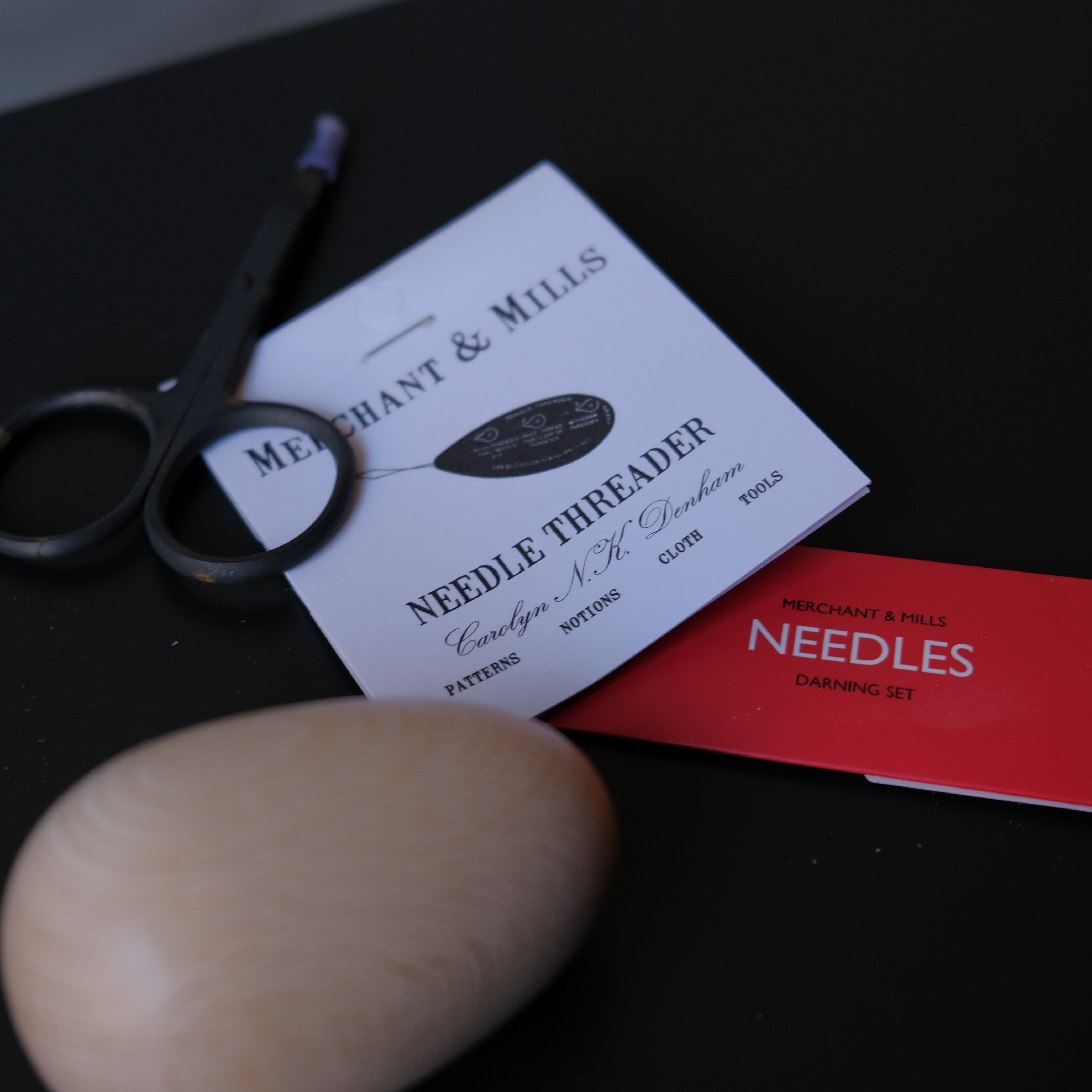 Included in the box: • Darning Egg • Needle Threader • Wide Bow Scissors • Selection of needles