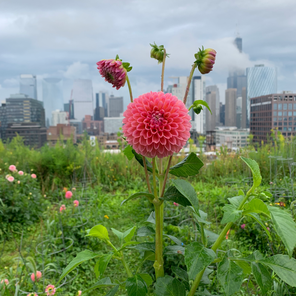 One hand-tied bunch of dahlias delivered every week for five weeks; varieties changing weekly. 10 stems per bunch; free delivery to participating TRC Community Club lobbies!